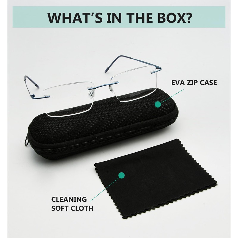 - ►[ RIMLESS DESIGN ] - Frameless frame is the trend for you today. Superior technology allows reading glasses to fit well on a variety of faces, showing your uniqueness and taste.