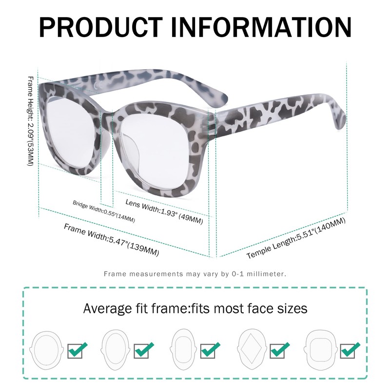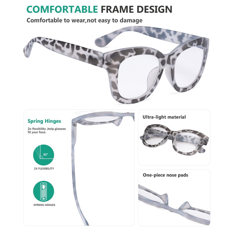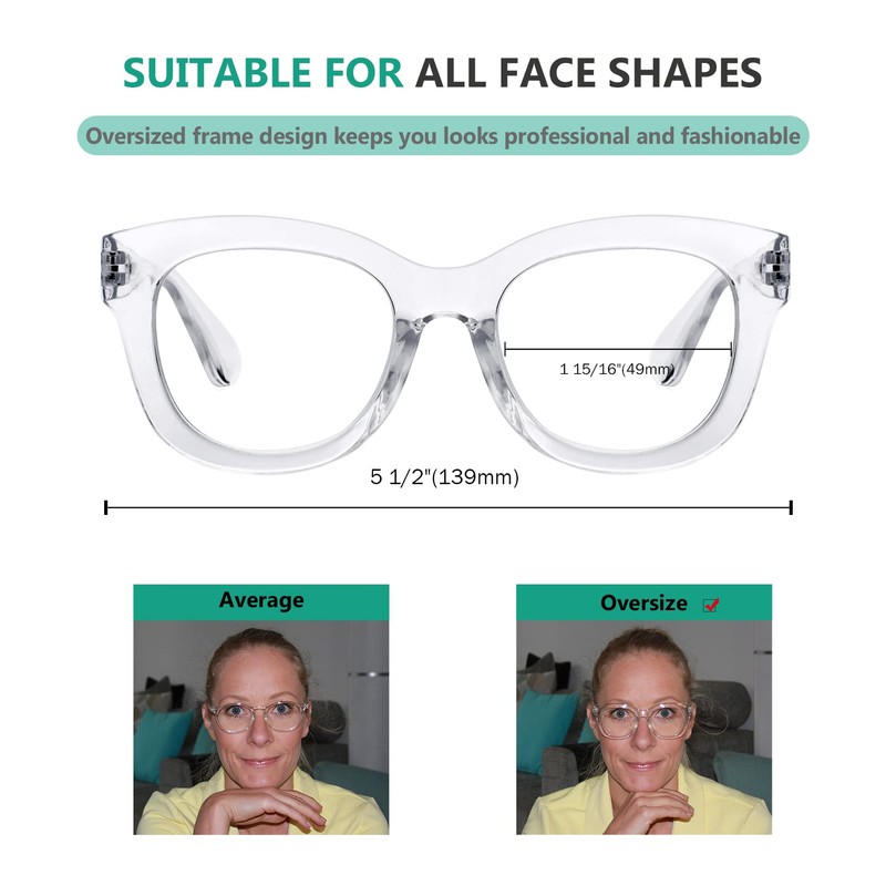 - ►[ OVERSIZED STYLE DESIGN ] - Oversized fashion frames are the trend for women today. Superior technology allows women's reading glasses to fit well on a variety of faces, showing your uniqueness and taste.