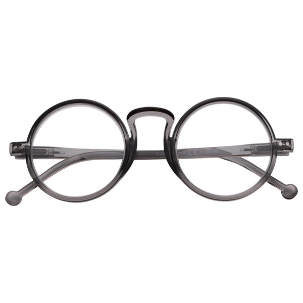 Eyekepper Round Reading Glasses for Women Men Retro Readers - Grey Arms +2.00