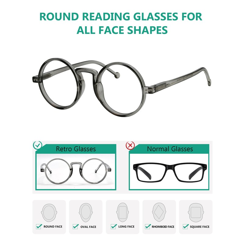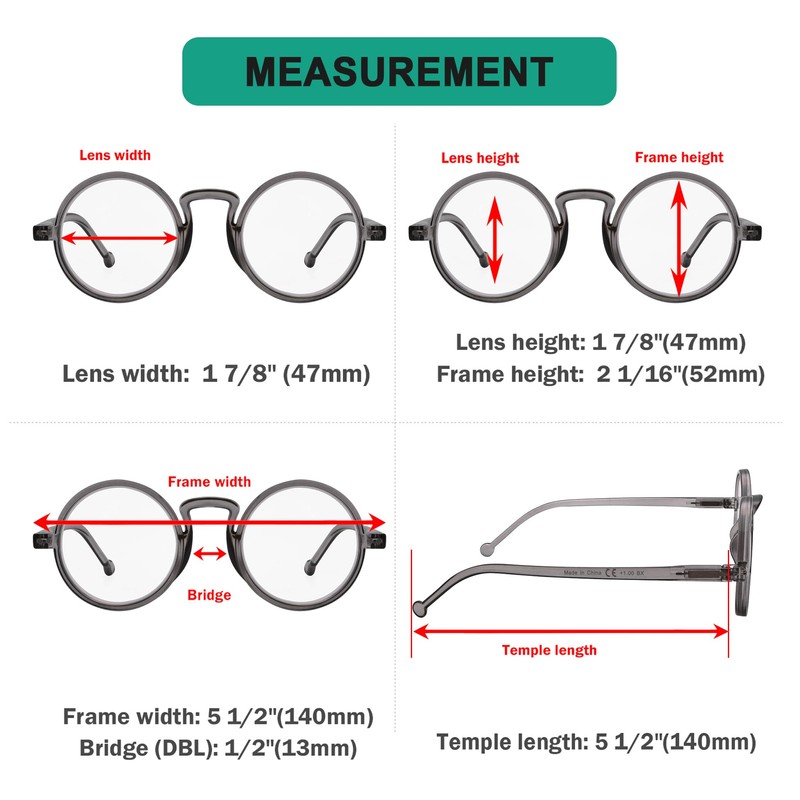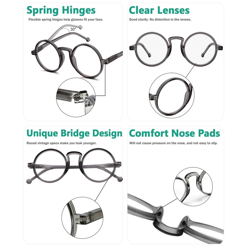 - ❤️ Retro round reading glasses with spring hinges are the best option for you. Frame height is about 2.05 inches (52mm).