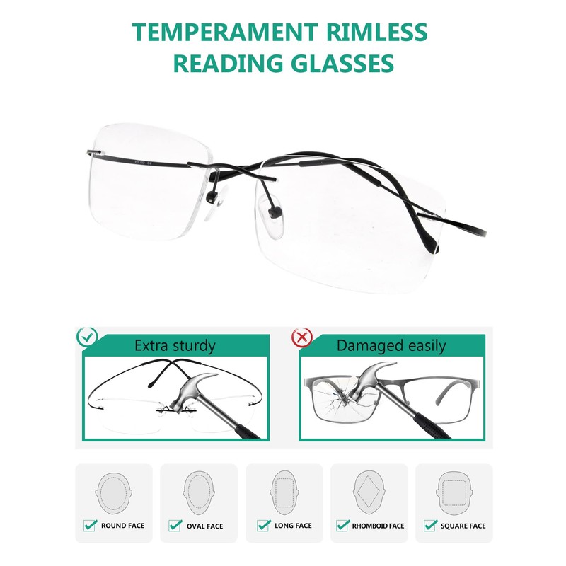 • EYEKEPPER TITANIUM RIMLESS READING GLASSES-Rx-able frame