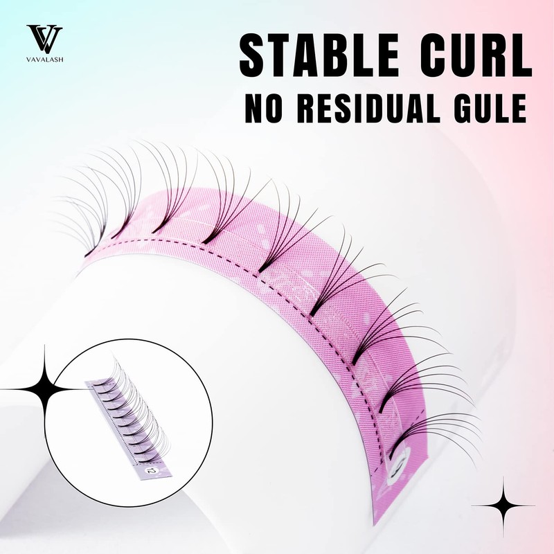 - 1. Especificaciones: Extensiones de pestañas de volumen ruso VAVALASH de tallo corto prefabricadas, 10 ventiladores cada fila (3D tiene 20 ventiladores cada fila), hay 12 filas en una bandeja, total 120 ventiladores por bandeja (3D tiene 240 ventiladores por bandeja
