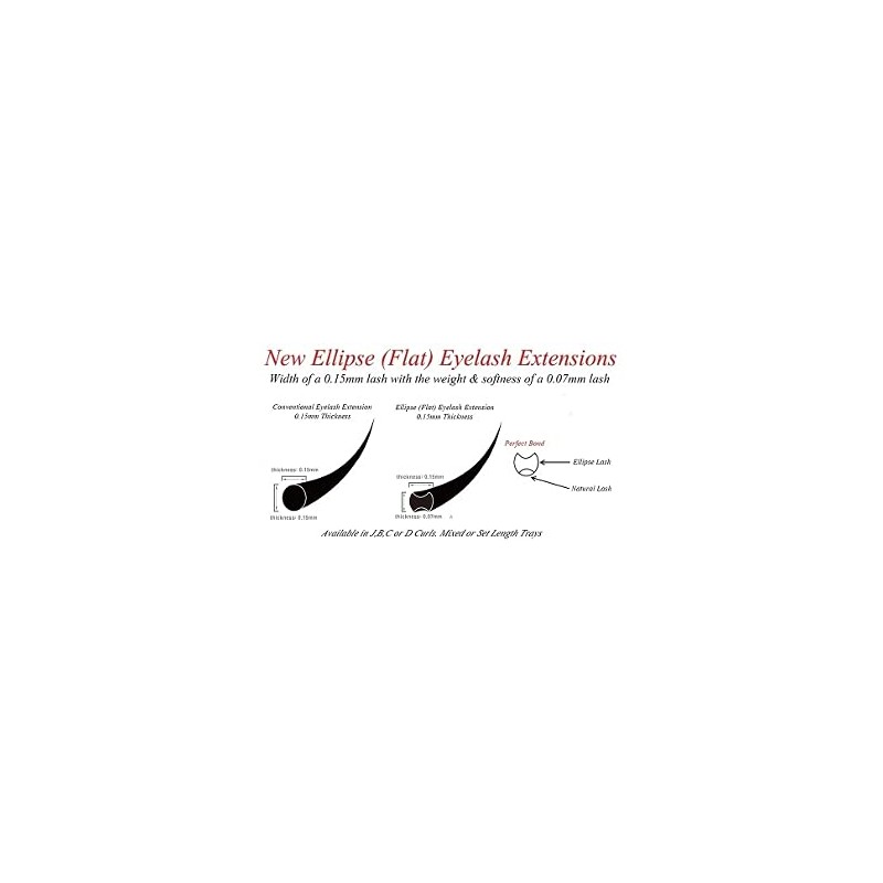 • The new flat ellipse Lashes give the look of a .15mm with the weight of a .07mm lash. With the ellipse shape these lashes are easy to place on the natural lash and also they are easy to stack lashes on top of them.