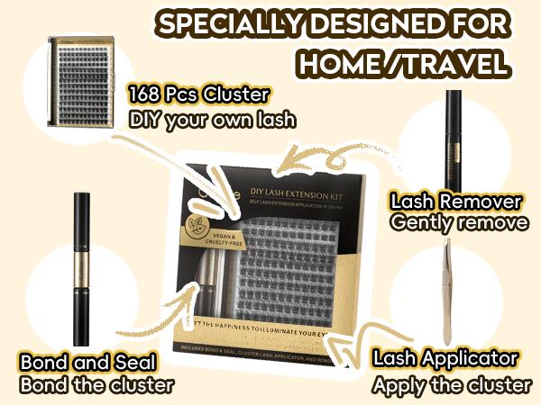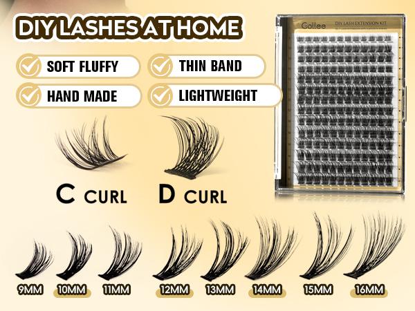 【Eyelash Kit At Home】:With GOLLEE DIY eyelashes extension kit,you can remove individual lashes and create a new style at any time,a little change can make a big difference.Cluster eyelash extensions kit is so convenient that you can diy your own beauty at home instead of salon,save more money and time for makeup.
