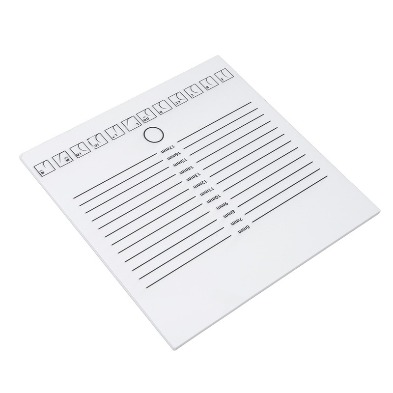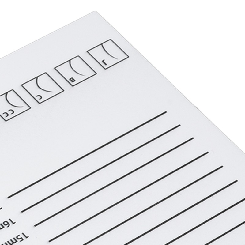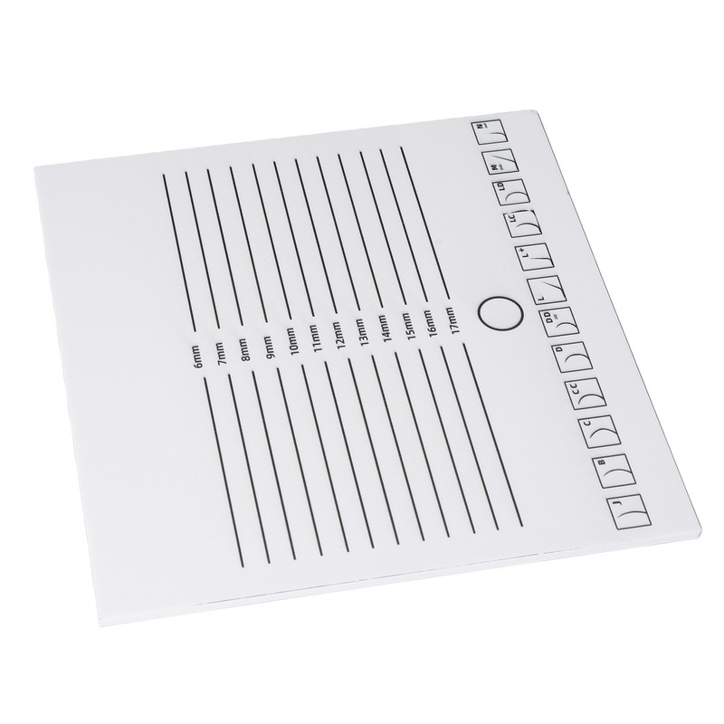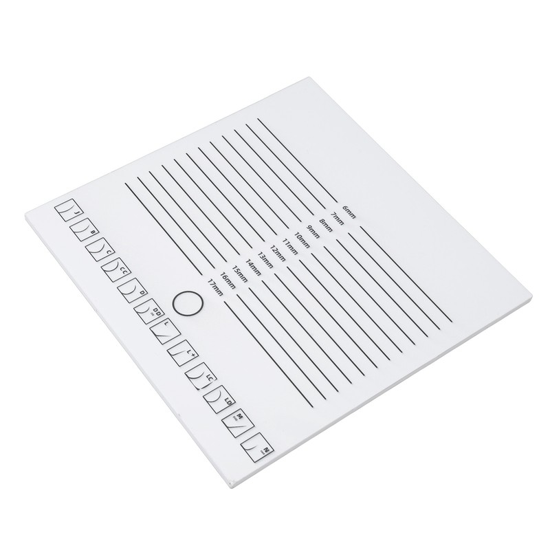 1、Scale Design: The scale is clear and neat, and the 6-17mm area is marked with false eyelashes, which is convenient to distinguish the length of false eyelashes. 2、12 False Eyelashes Camber: Show 12 kinds of camber of grafted false eyelashes to help eyelash stylists or beginners identify eyelash models. 3、Double Row: Each scale is set in double rows, and the storage space is large, which can store more eyelashes and improve work efficiency. 4、Premium Materials: Made of 5mm thick PP material, fine workmanship, anti drop and wear resistant. 5、Uses: Both glue can be placed for easy access to glue, and false eyelashes can also be placed. Washable, easy to clean.