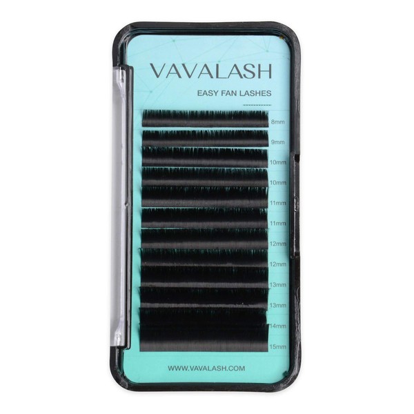 **VAVALASH Easy Fan Volume Lashes** 1\. Easy Fan Volume Lashes are specially designed for lash technicians that are NEW to volume by hand technique. 2\. The unique sticky lash strip will prevent the volume fans from separating at the base, allowing you to create the perfect fan within seconds. 3\. Each row comes on a sticker that can be put on your work area so you can work efficiently, and more quickly. **Size** **Curl:C、 CC、D、DD** **Length:8-20mm & 25 mm single length & 8-15mm mix length ** **Thickness:0.03、0.05、0.07** **One tray:12 rows in one tray**