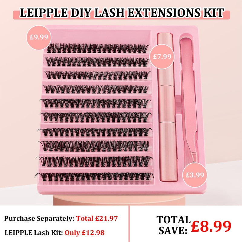 - DIY eyelash extension kit at home: Our eyelash cluster kit contains 200 eyelash clusters, 8 - 16 mm, 10 ml strong hold lash bond and seal, and an eyelash applicator, so you can DIY a salon-like eyelash extension result at home in just 5 minutes, save your valuable time and money