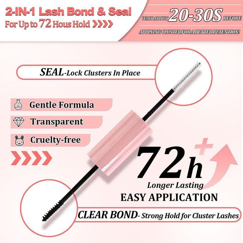 - Strong hold and long-lasting: Do you want to get long-lasting eyelashes? Eyelash extension kit with eyelash glue can stick cluster eyelashes strongly, which lasts for 48-72 hours, and you can brush seal to increase eyelash persistence by 30%. Eyelash bonding and sealing is crucial for your beautiful eyelashes all day long.