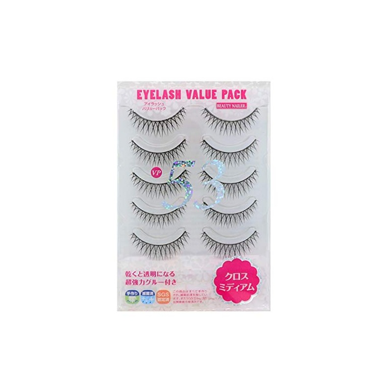 Set Contents: 5 pairs of fake eyelashes, 1 x strong eyelash adhesive. Keep out of reach of children. If you have any abnormalities in your eyes or skin, please stop using this product. If the glue (eyelash glue) does not match your skin, please stop using it. Eyelash Value Pack includes 5 pairs of eyelashes. Recommended for those who use false eyelashes every day, and can be used again and again by washing them with water. The eyelash value pack means you get the ideal eyelashes with suction power." A must have for advanced eye makeup. Increases volume and length for an impactful eye. Value pack of 5 pairs of false eyelashes, wash with water and reuse The type is natural short. How to use: Apply the adhesive specifically for false eyelashes on average, and lightly press it onto the eyelid. The length of the false eyelashes can be cut to your desired length with scissors, so you can wear them more naturally. Store it back in the tray to keep its shape after use. 5 pairs false eyelashes, 1 x strong eyelash adhesive