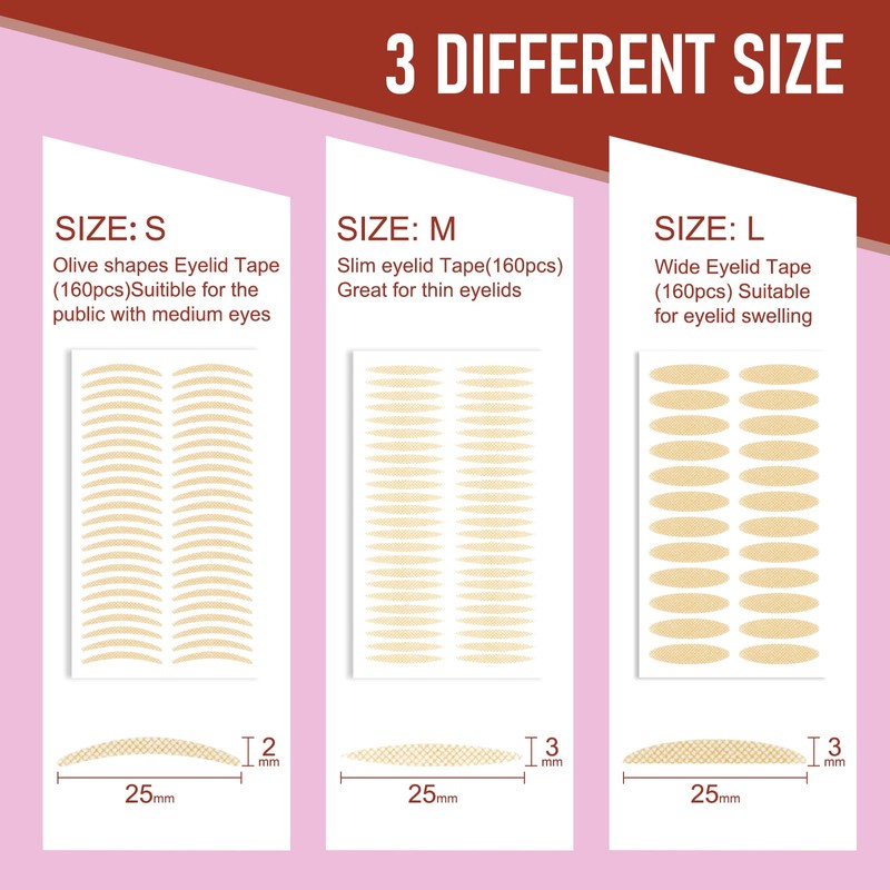 - 【3 Different Sizes】The eyelid tape is available in 3 sizes, enough quantity for your daily use and replacement. Different sizes of eyelid straps bring double eyelids of different widths, whether your eyelids are thick, swollen, or thin, it can help you create deep and natural double eyelids.