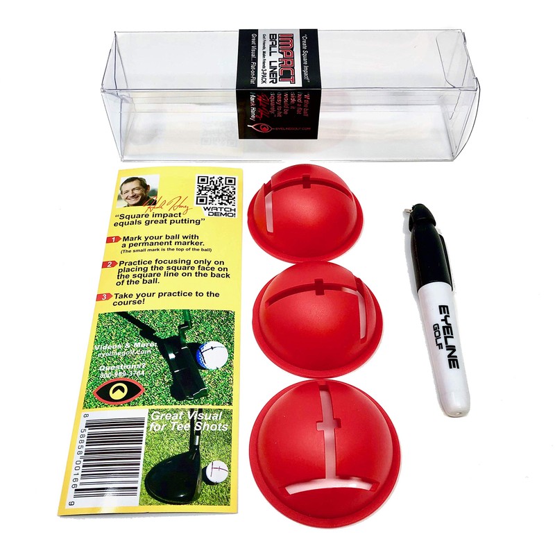 EyeLine Golf Impact Ball Liner - Training Aid Accessories - 3 -Pack Red Alignment Kit Marker Pen by Hank Haney. Align ball see putter face alignment to target line. Immediate Short putt improvement