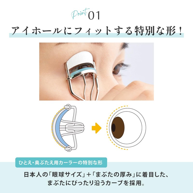 A single and deep eyelash is often hidden behind the eyelid and it is difficult to get tangled around the roots. This curler is for those who can curl the eyelids from their roots and see a patch of eyes.
