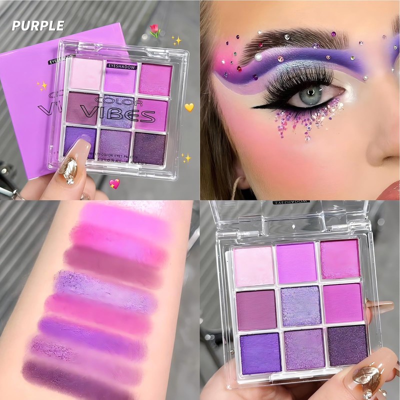 Eyeshadow Eyeshadow Palette with 9 Colors Matte and Glitter, Waterproof Shimmering Matte Shade, Highly Pigmented Glitter Eyeshadow, Eye Glitter Makeup Palette (Purple)
