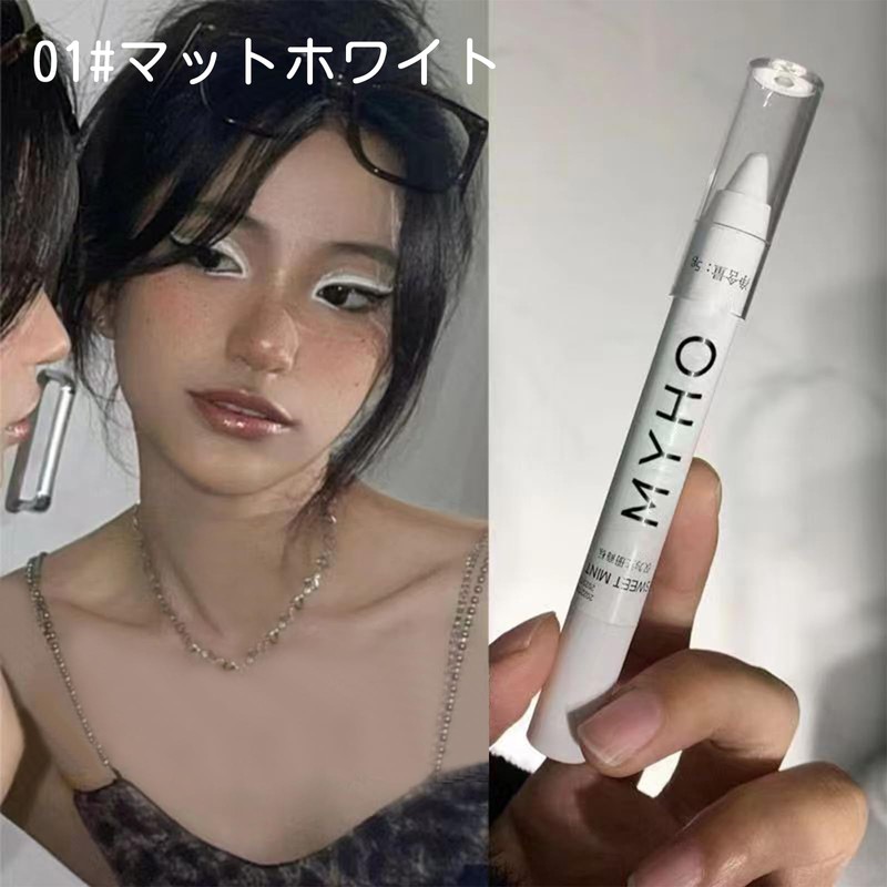 Eyeshadow Pencil Solid Color Highlight Tear Bag Pencil Highlight Stick Pearl Glow Highlight Glitter Highlighter Pen (01# Matte White)