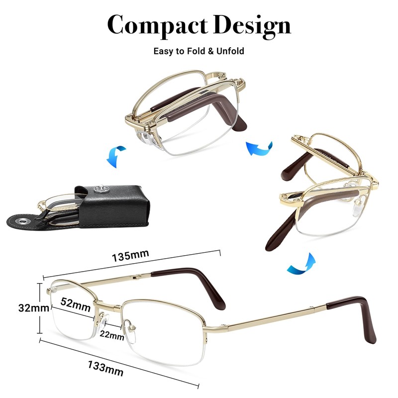 • PORTABLE READING COMPANION: Folding arms make these readers compact to carry with you anywhere - in your bag, pocket or desk for on-the-go clarity.