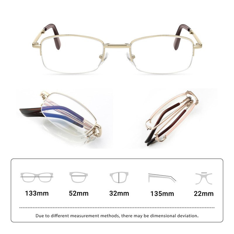EYESPEX 1 Pack Folding Reading glasses Half Frame Metal
