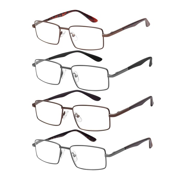 - 4-Pack Mens Readers: Great value 4-piece metal frame reader means you can easily use a pair no matter where you are. Fashionable reading glasses can be matched with different outfits in daily fashion.
