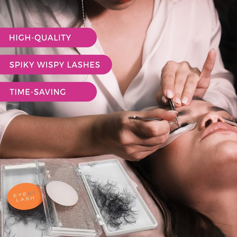 - ✅ STUNNING WISPY LASH LOOK: Featuring a closed spike lash at the center, wispy premade fans eyelash extensions offer a spiky, textured, voluminous look. Perfect for wispy, volume, mega volume, hybrid, Kim K, or any trendy lash sets from natural to dramatic style. Try Eyesy wispy eyelashes now!