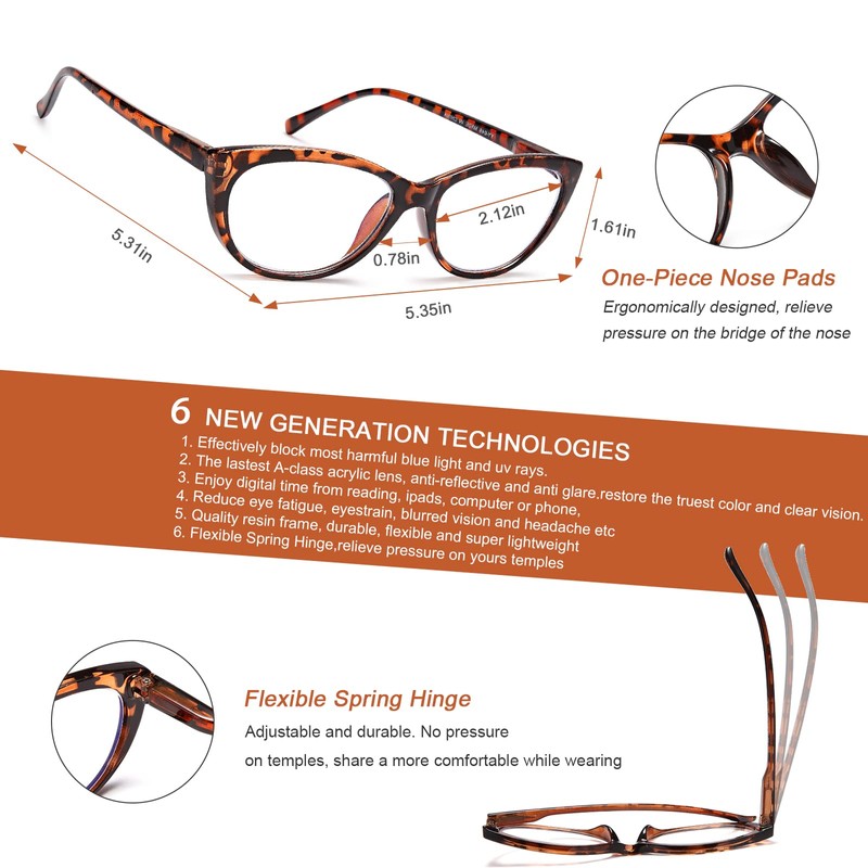 - 【Flexible Spring Hinge Design】The cat eye reading glasses with flexible durable spring hinge, share a more comfortable wearing .Universal size fits most face shapes.Stylish cateye frame, colorful appearance, leading the trendy trend.