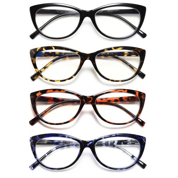 EYEURL 4 Pack Cat Eye Reading Glasses for Women Blue Light Blocking Readers Lightweight Spring Hinge Anti Eyestrain UV Fashion Eyeglasses +3.5