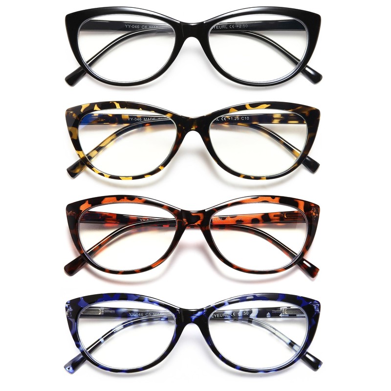 - 【4 Pack Cat Eye Reading Glasses 】4 women reading glasses +1 high-grade eyeglasses cleaning cloth. You'll have a pair handy wherever you are. Keep a pair in your favorite reading spots.