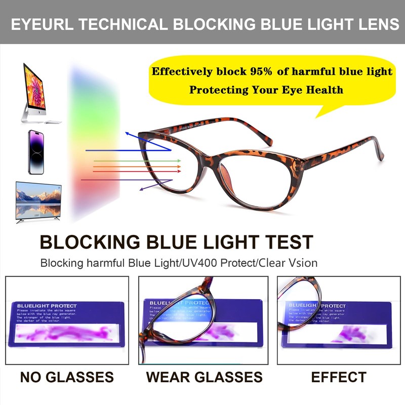 - 【Blocking Harmful Blue Light Reading Glasses】EYEURL anti blue light glasses can filter harmful blue light & UV400 rays. After using blue light blocker readers,make you reduce eye fatigue, glare, blurred vision and headache from reading, ipads, gaming, computer or phone.
