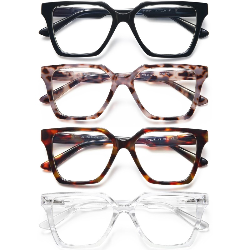- 👓【Value 4-Pack Mix Color Reading Glasses】Total 4 Pair Oversized Reading Glasses, The four pairs colorfu reading glasses is fashionable and elegant, suitable for various face types.Reading glasses are one of those things you need multiple pairs of. You need a pair in the kitchen, in the purse, in the car, and on your nightstand.very suitable for office learning, casual reading, etc..