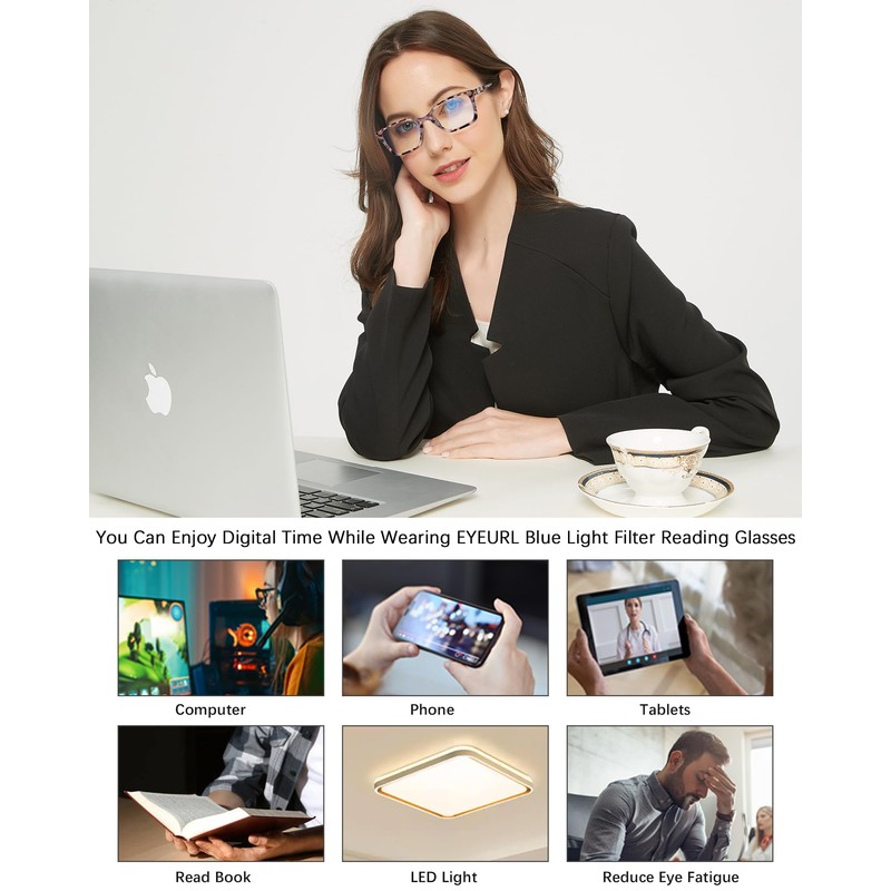 Anti Eye Fatigue: Wearing your EYEURL glasses, NO worry about eye fatigue, blurred vision. Reduce eye strain and sensitivity to light when facing digital screens.