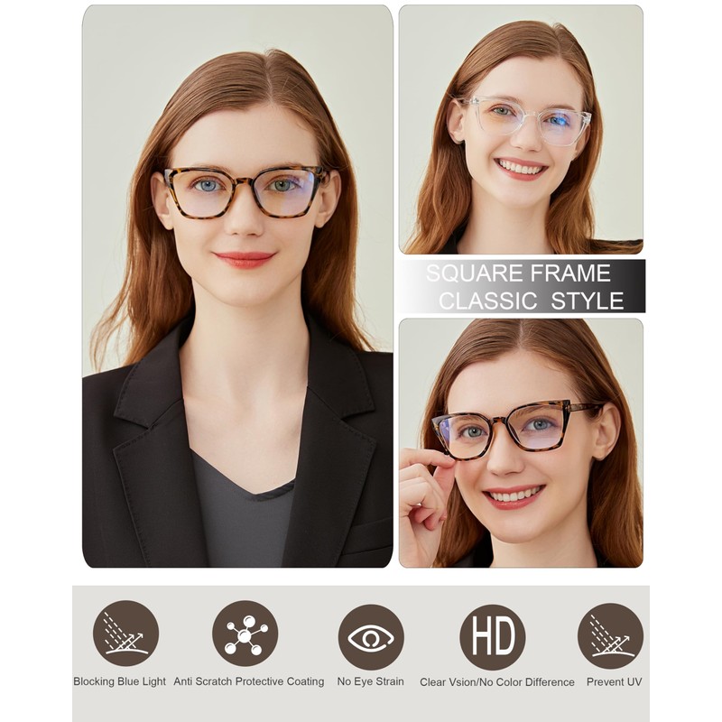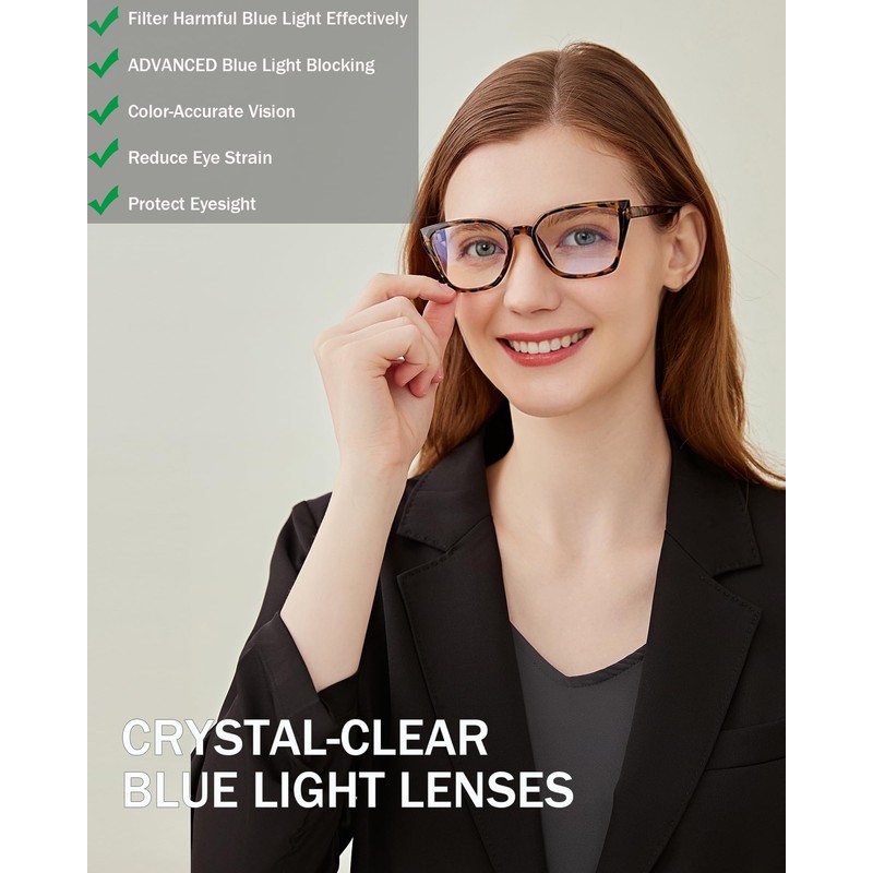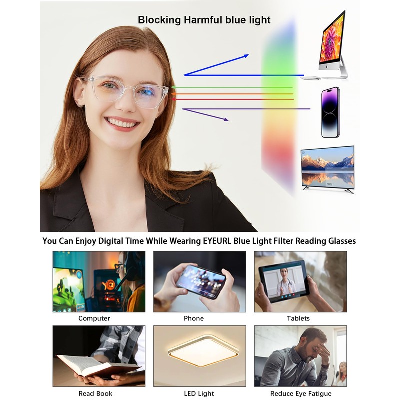 - đăBlue Light Blocking Reading GlassesăThe cat eye reading glasses with UV400 protection, Blue light blocking lens, anti glare and cut more than 95% of harmful blue light. Reduces eye strain and discomfort caused from long periods of reading, using personal computer/ TV/ phones/laptop and work under fluorescent lights