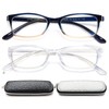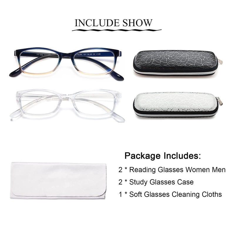 - 2 Pairs Readers for Women: 2 pair men women reading glasses + 2 sturdy glasses case + 1 soft eyeglasses cleaning cloths. Great for home, office, or bedside use.