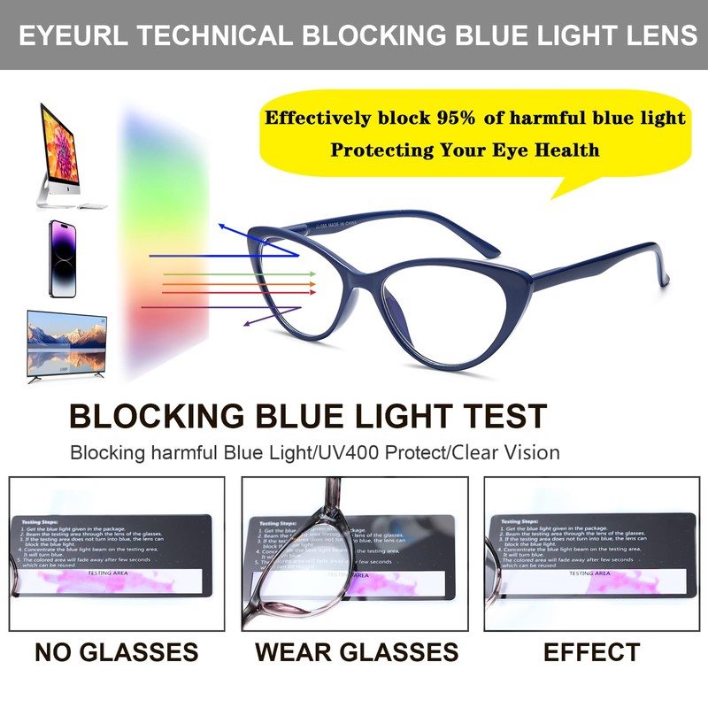 - đăAnti Blue Light Blocking GlassesăEYEURL Blue light blocker with UV400 protection, Our anti-blue light lens adopts double protection technology, not only coating the surface of the lens with anti-blue light layer, but also adding blue light factor into the basic material of the lens, which can block harmful blue light more effectively for a long time.