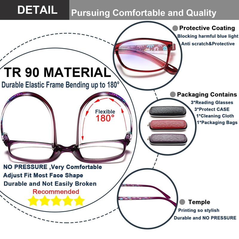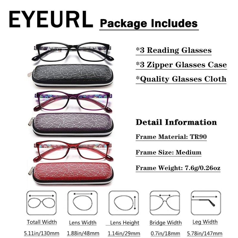 【Package Include】2 Pair of women reading glasses +2 Beautiful glasses case + 1 High-grade glasses cloth.