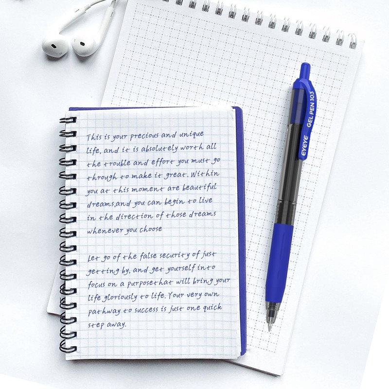 - EYEYE Fine Tip Pen : This gel pen has a fine precision point to write smoothly and skip-free every time. Our unique ink pens fine point maintains even, flowing strokes for precise writing.