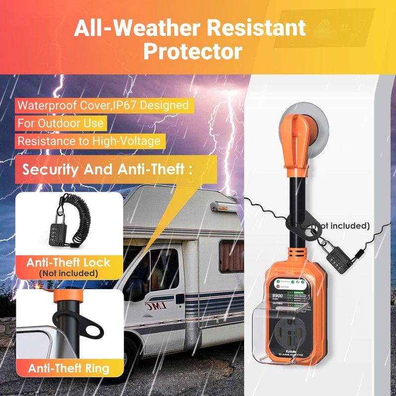 EyGde RV Surge Protector 50 Amp Waterproof, RV Circuit Analyzer with Full Electrical Protection, Power Plug Adapter Protectors for 50amp Camper Travel Trailer Accessories