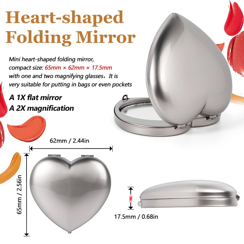 In addition, its innovative design and beautiful appearance make it a suitable gift for your friends and family. Whether you want to give it to your female friends or use it for yourself, this mini heart shaped folding mirror is a good choice.