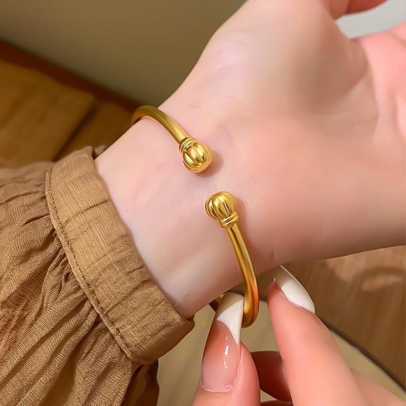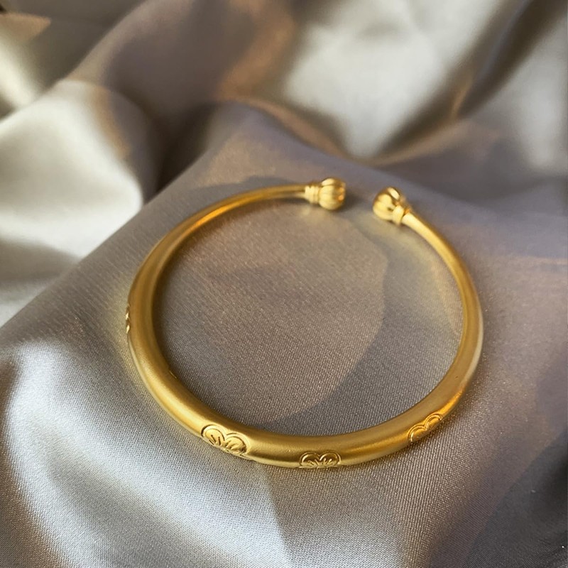 Eyixvan18k Yellow Gold Diamond Cut Elegant Flower Adjustable Cuff Bangle Bracelet for Women
