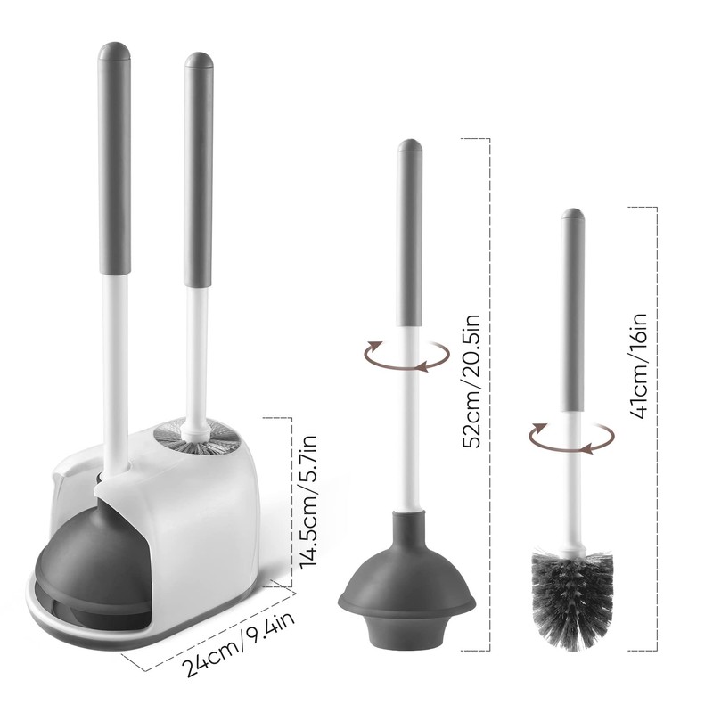 - 【Safe & Stylish Toilet Plunger and Brush Combo】Both the plunger and the brush gets the job done without scratching or marking the toilet bowl. Sober shape and sleek design, our toilet cleaning brush and plunger can be perfectly integrated into the environment.