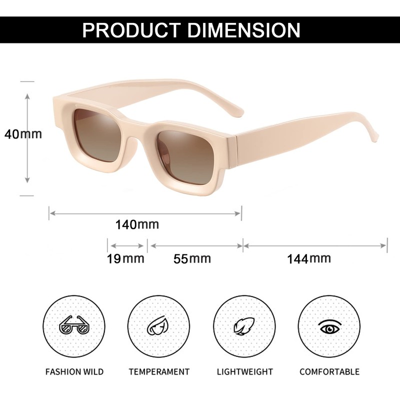 EYLRIM Thick Square Frame Sunglasses for Women Men Chunky Rectangle Polarized Sunglasses UV400 Protection(A3 Beige/Gradient Brown)