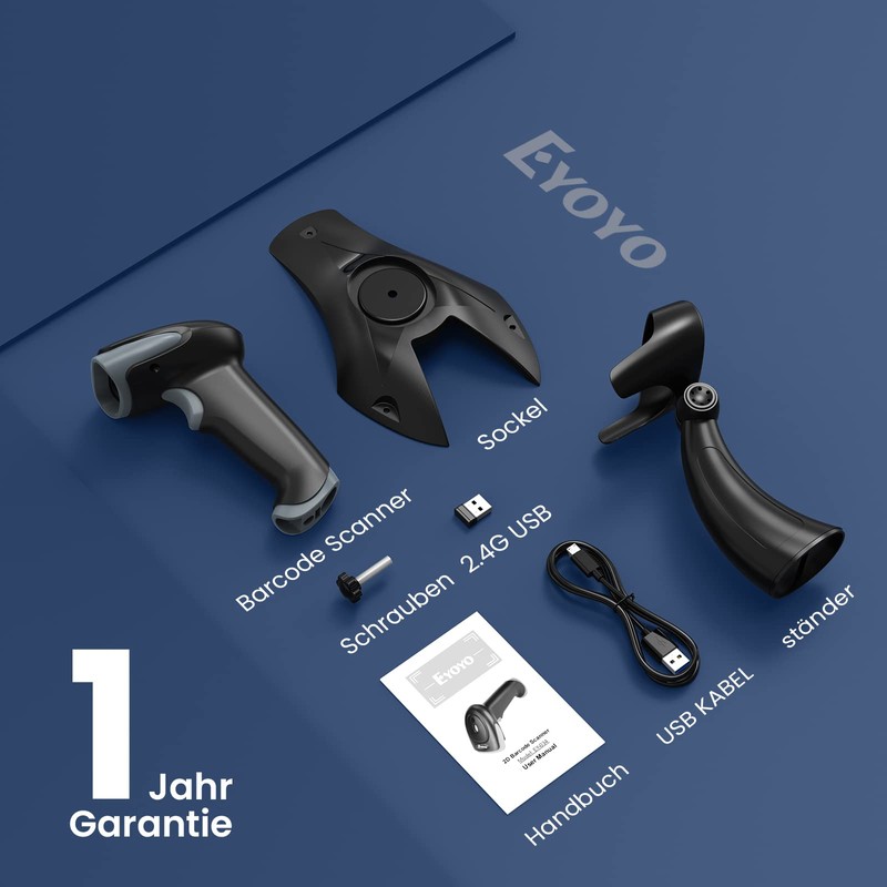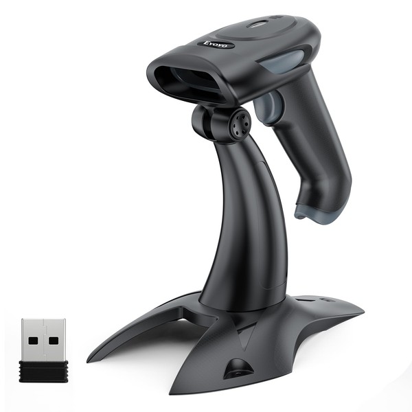 Eyoyo 2D Barcode Scanner with Stand, Bluetooth, & 2.4G Wireless & USB Wired QR Code Scanner, Handheld & Handsfree Bar Code Reader Screen Scanning for Phone PC Window Mac Android
