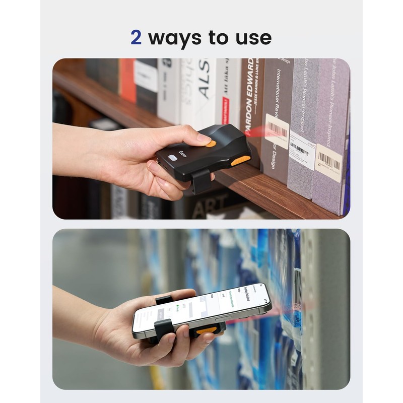 - Eyoyo - Escáner Bluetooth de código de barras inalámbrico: lector de código de barras 1D portátil para biblioteca, tienda minorista, inventario de libros - escáner rápido UPC ISBN compatible con teléfono Android de 4.7 a 7.25 pulgadas, iPhone