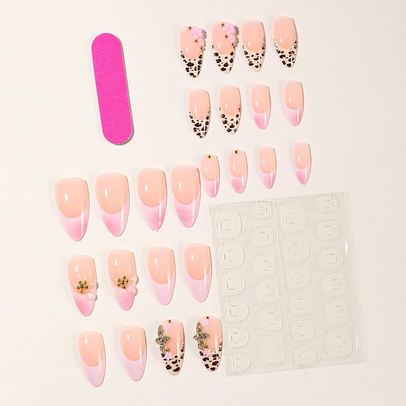 - Package: You'll get 24 french almond false nails in 12 sizes. 1 mini nail file, 1 small wooden stick, 1 piece of nail glue sticker. Almond glue on nails are perfect for most people's nails