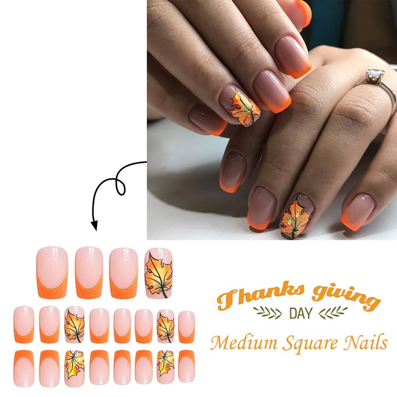 - Press on Nails Short Square: These Thanksgiving stick on nails are made of high-quality healthy ABS material, no irritating smell, higher gloss, not easy to break, and will not harm the human body or nails, and can be used with confidence