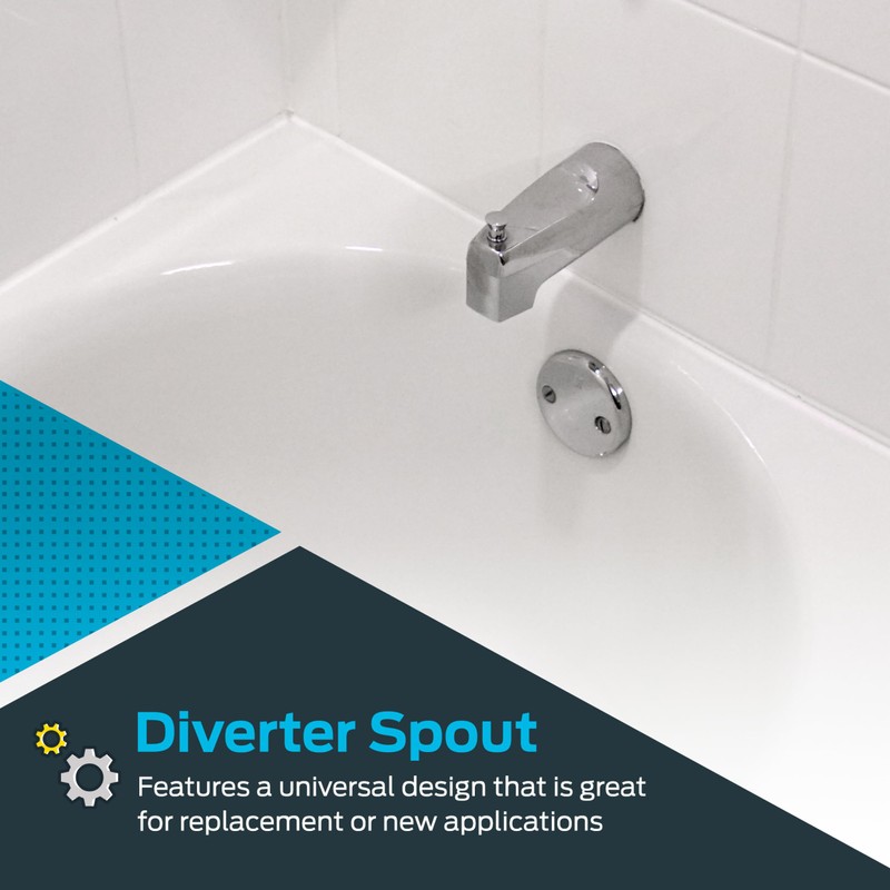 - BATHTUB DIVERTER SPOUT: This bathroom tub diverter spout features a universal design that is great for replacement or new applications