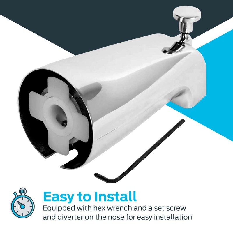 Product DescriptionSimplify your plumbing and home improvement projects with the slide-on diverter spout for bathtunb faucets. Composed of durable zinc, these diverter spouts protect against flaking, are corrosion free, and feature a universal design that is great for replacement or new applications. This tub spigot diverter is compatible with 1/2 inch copper pipe, is equipped with hex wrench, and features a set screw and diverter on the nose for easy installation.From the ManufacturerEZ-FLO's Slide-On Diverter Spout features a universal design. This spout is made of zinc construction for durability. The chrome finish completes the look of your bathtub decor.