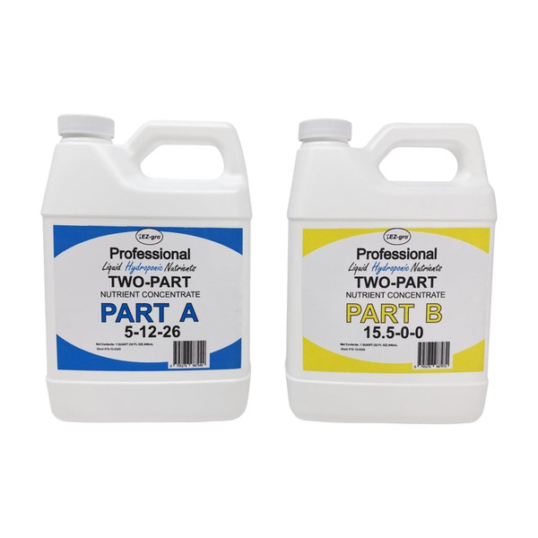 EZ-GRO 5-12-26 Part A & 15.5-0-0 Part B Formula of Hydroponic Nutrients | Hydroponic Plant Food Suited for Hydroponic and Soil Based Applications | Liquid Plant Food 1 QT of Each