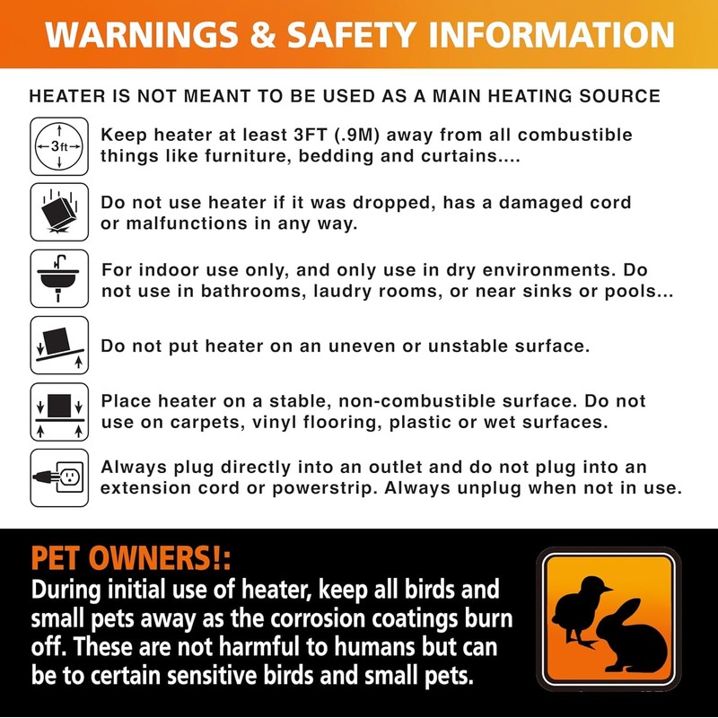 • SAFETY AT ITS BEST: Rest easy knowing that this heater prioritizes your safety. It is equipped with an advanced safety system, including a tip-over switch that automatically shuts off the heater if it's accidentally knocked over, ensuring no hazardous situations arise. The stay-cool body prevents burns & ensures safe handling, even during extended use. The overheat protection sensor detects excessive heat and promptly shuts off the heater to prevent any potential risks. Experience peace of mind and warmth in a secure environment.