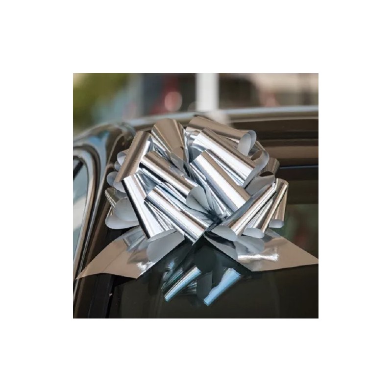 • Made from 4 inch wide shiny weather resistant material, these bows can be used indoors or outdoors. The size of this bow allows them to be used on the windshield to highlight a price, year or vehicle feature. Or use on anything that needs a big shiny bow!