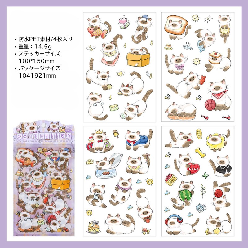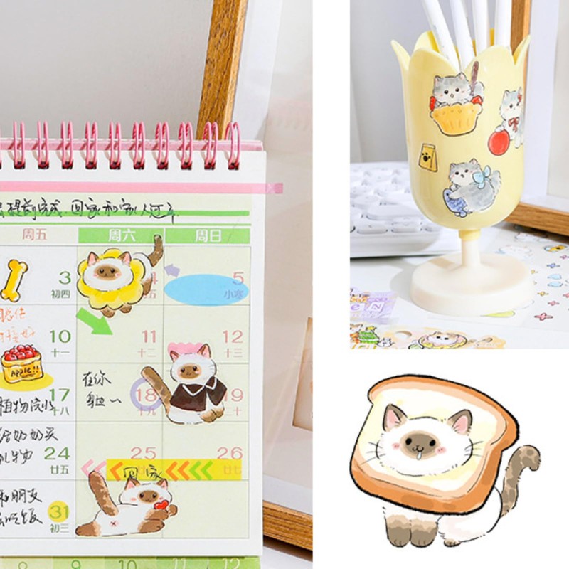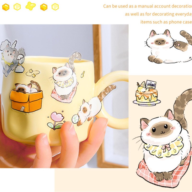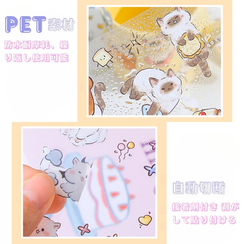 EZ PEACH Collage Material, Seal, Flake, Transparent, Animal Shape, Cats, Waterproof, Cute, Translucent, PET Collage, DIY, Handmade, Material Paper, Pack of Paper, Sticker Sheet, Notebook, Sticky Notes