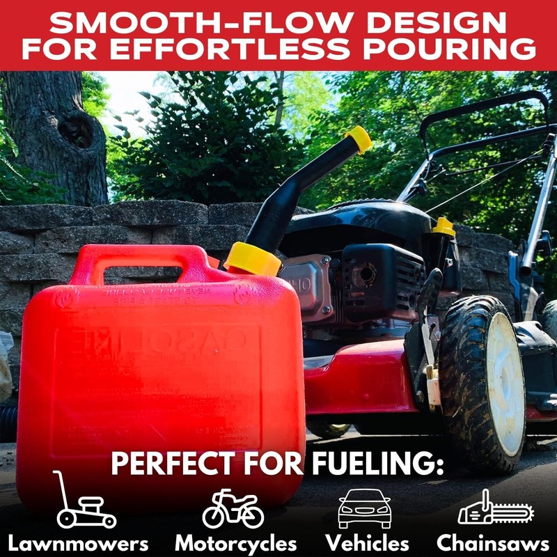 - DURABLE, BUILT-TO-LAST GAS CAN SPOUT REPLACEMENT - Unlike other gas can replacement parts that are cheap and require replacement again and again, our gas can replacement spout kit is crafted from high-quality, unyielding plastic and delivers exceptional results. Our rigid spout replacement ensures sustained resilience against wear and tear. Unleash the power of endurance and versatility with our gas can nozzle replacement, promising an extended lifespan for your essential equipment.