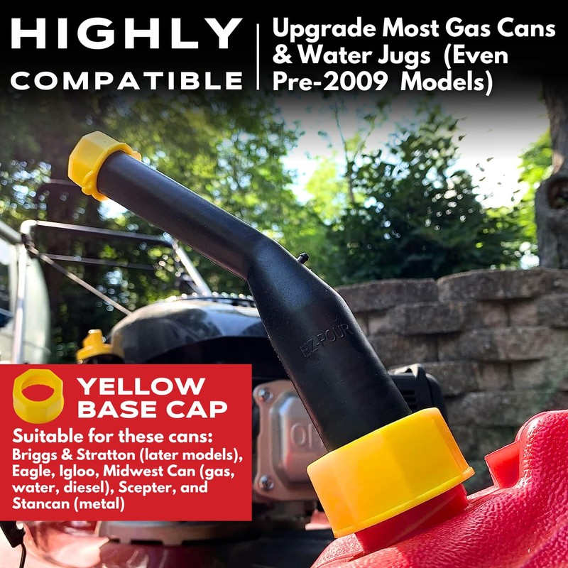 - EASY-TO-ASSEMBLE, REVITALIZING GAS CANS WITH CONFIDENCE – Say goodbye to headaches and stress, our hassle-free solution allows anyone to revitalize their existing gas cans and water jugs. EZ-POUR Rigid Spout Replacement was designed with everyone in mind. Whether it's gas nozzles for gas cans, a diesel fuel can spout, or a heavy-duty gas spout, our effortless kit has only a few easy-to-identify components that will restore your old gas can to its former glory. Experience seamless fuel storage.